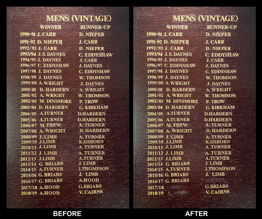 In true Orwellian “1984” style — “he who controls the present controls the past” — the club’s directors/committee members have, again, abused their position of power and implemented director Limb’s ‘bright’ idea to erase the name of a former member from Nottingham Squash Rackets Club honours history.